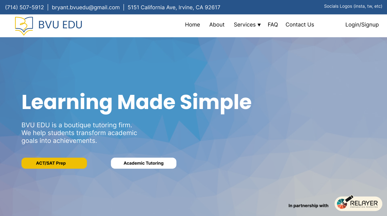 Developed responsive web pages, navigation components, and contact forms for BVU EDU’s tutoring platform.