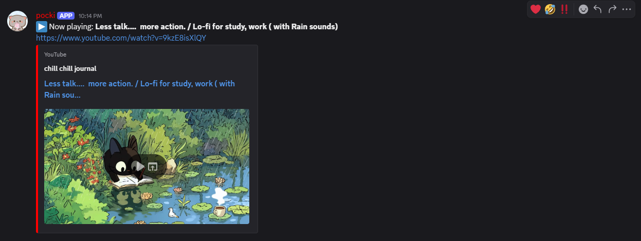 Created Pocki, a Python-based Discord bot that streams YouTube audio using discord.py, FFmpeg, and yt-dlp.